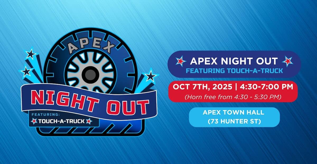 The Apex Police Department and Town of Apex are presenting Apex Night Out on Tuesday, October 7, 2025, from 4:30 to 7 p.m., at Apex Town Hall, 73 Hunter Street, Apex, North Carolina.
