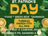 West 94th Street Pub, 4711 Hope Valley Road, #6C, Durham, North Carolina, is hosting a St. Patrick's Day Party on Tuesday, March 17, 2026, from 11 a.m. to 2 a.m. It's free to attend. Pay for your food and drink. You can expect green beer, Guinness and Irish Mules, as well as corned beef and cabbage, Reubens, Bangers & Mash, Shepherd's Pie and more. … [Read more...] about St. Patrick’s Day at West 94th Street Pub in Durham