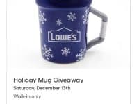 Lowe’s is celebrating the holidays by giving away a special holiday mug for one day only. On Dec. 13, 2025, Lowe’s is celebrating the holidays by giving away a FREE Holiday Mug at every location, while supplies last — starting at 10 a.m. No purchase necessary. The holiday giveaway is only available for the first 200 MyLowe’s Rewards members at each location. Join MyLowe’s Rewards … [Read more...] about Lowe’s gives away free holiday mug Dec. 13