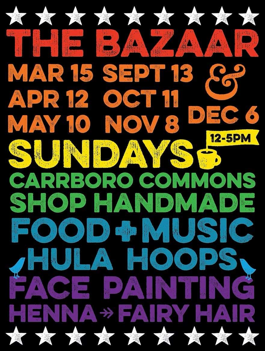 The Bazaar is a craft and art market that takes place several times a year in Carrboro, North Carolina.