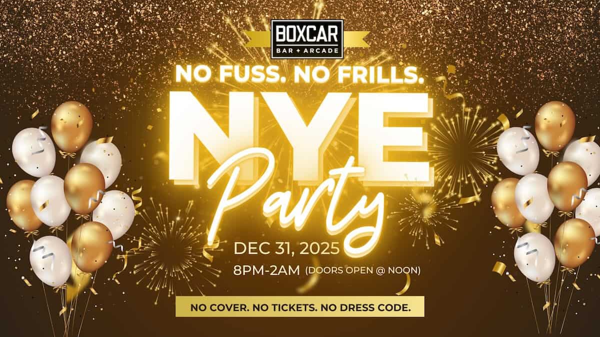 Boxcar Bar + Arcade, 621 Foster Street, Durham, North Carolina, is hosting a Fuss-Free New Year’s Eve party for those who don’t want to spend a ton of money. There’s no cover, no tickets, no dress code.