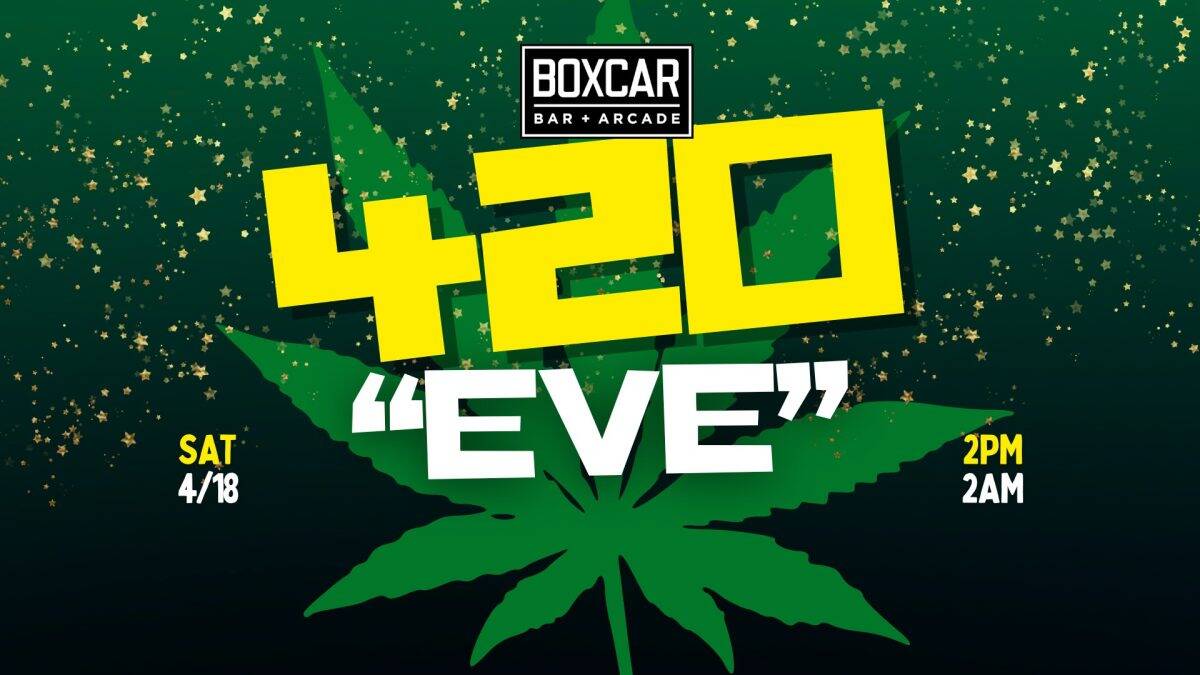Boxcar Bar + Arcade, 330 W Davie Street, Raleigh, North Carolina, is hosting a 420 Eve Party on Saturday, April 18, 2026, from 2 p.m. to 2 a.m.