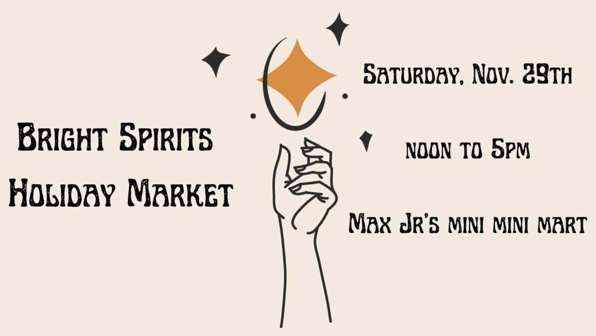 Bright Spirits Holiday Market is a local artisan market taking place behind MAX JR mini mini mart on Saturday, November 29, 2025, from 12 to 5 p.m.