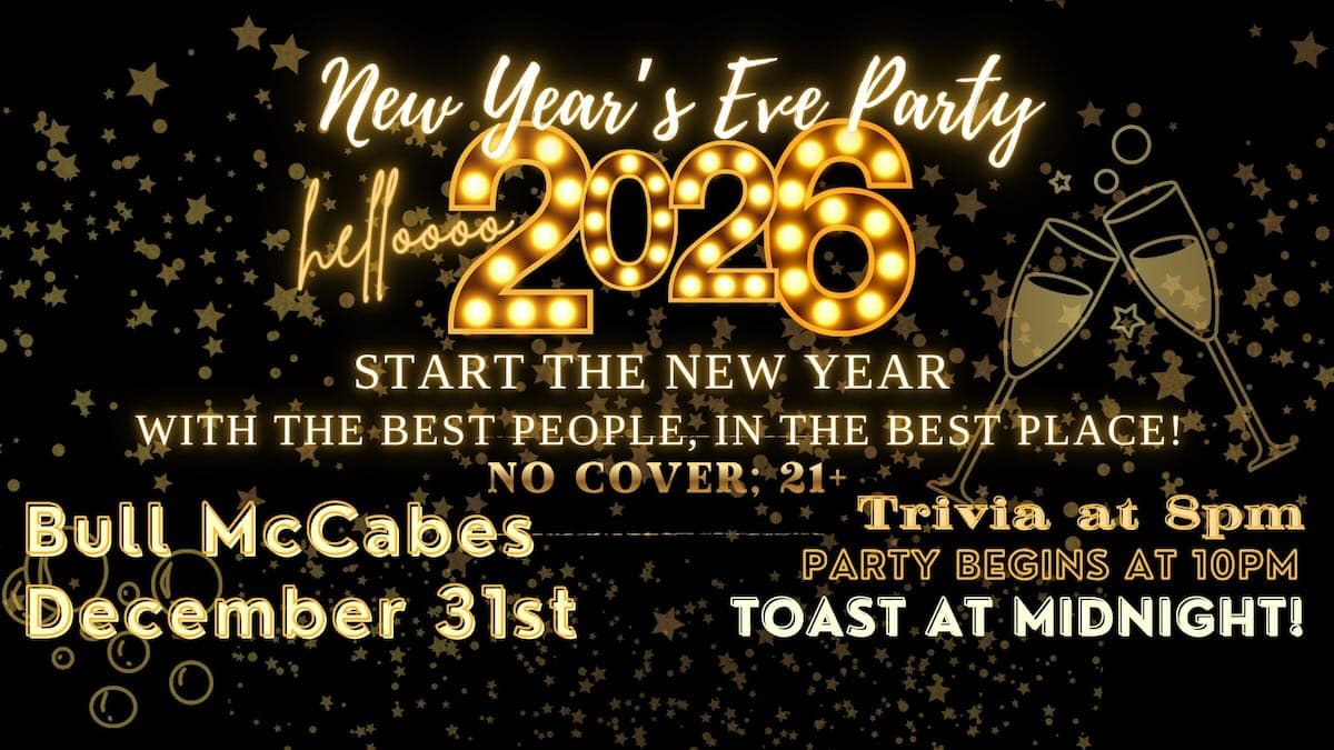 Bull McCabe’s, at 427 W Main Street, Durham, NC, is hosting a New Year’s Eve party on Wednesday, December 31, 2025, starting at 10 p.m. There is NO cover charge.