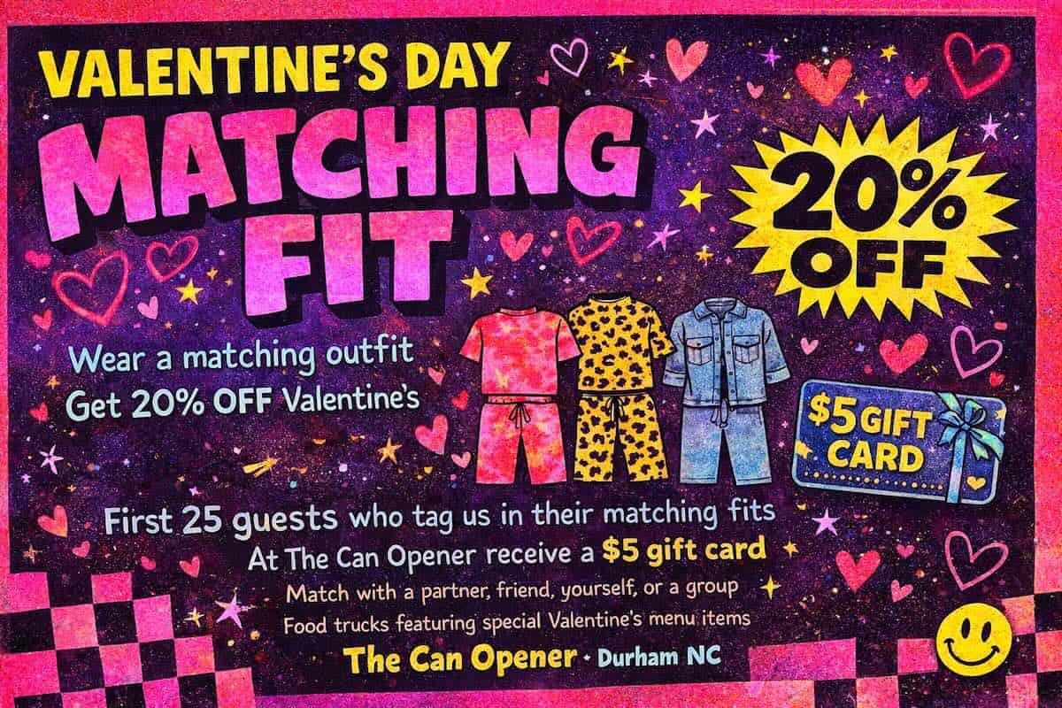 In addition, the first 25% guests who tag The Can Opener in their matching fits social media posts will receive a $5 gift card.