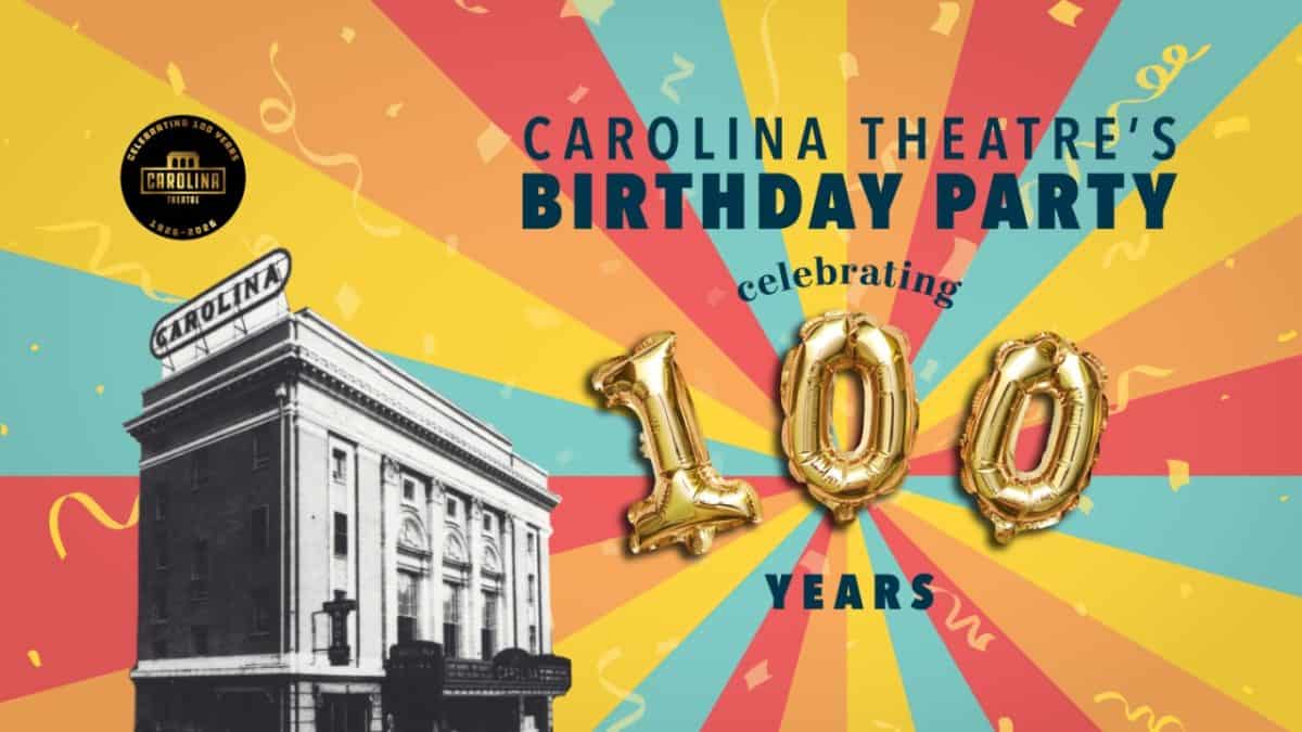 The Carolina Theatre of Durham, at 309 West Morgan Street, Durham, North Carolina, is celebrating its 100th birthday with a party on Saturday, January 31, 2026, at 6 p.m.