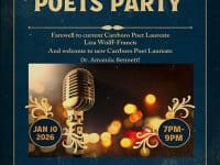 The Town of Carrboro is presenting a Poets Party on Saturday, January 10, 2026, from 7 to 9 p.m., at Drakeford Library Complex, 203 S Greensboro Street, Carrboro, North Carolina. This event is free and open to the community. This event will serve as a farewell to the current Carrboro Poet Laureate, Liza Wolff-Francis, and to welcome the town's new Poet Laureate, Dr. Amanda Bennett. The … [Read more...] about Poets Party in Carrboro Jan. 10
