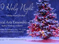 The Vocal Arts Ensemble of Durham is presenting their annual Christmas concert, O Holy Night: Darkness Into Light, on Sunday, December 13, 2025, at 4 p.m., at Trinity United Methodist Church, 215 N Church Street, Durham, North Carolina. Admission is free, but donations are gratefully accepted. This holiday season, the 36 voices of the Vocal Arts Ensemble invite you to a winter concert that … [Read more...] about Vocal Arts Ensemble of Durham’s Annual Christmas Concert Dec. 13