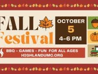 Highland United Methodist Church, 1901 Ridge Road, Raleigh, North Carolina, is hosting a Fall Festival on Sunday, October 5, 2025, from 4 to 6 p.m. Admission is free. There will be FREE hot dogs for kids ages 10 and under, and BBQ ($12/plate) available. The BBQ plates are available during lunch and dinner hours that day. The festival features: … [Read more...] about Fall Festival at Highland United Methodist Church Oct. 5