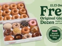 Krispy Kreme has a special deal for World Kindness Day, which is Thursday, November 13, 2025. Buy any regularly priced dozen and get a FREE dozen Original Glazed to share with others. Krispy Kreme's World Kindness Day offer is available Thursday in-shop and via drive-thru at participating U.S. shops and for pickup or delivery via Krispy Kreme’s website and app using code BOGOFREE, while … [Read more...] about Krispy Kreme for World Kindness Day: BOGO Dozen Doughnuts Nov. 13