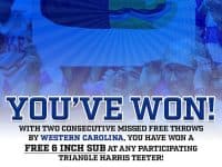 Duke fans (or, really, anyone who is hungry) can get a FREE 6-inch sub at Harris Teeter when an opposing team misses two consecutive free throws in the second half of a Duke Men's Basketball home game. The promo is valid only at participating stores in the Triangle market (Raleigh, Durham, Chapel Hill and Cary), while supplies last. You need to have a VIC card to get the coupon. That happened … [Read more...] about Duke Promo: Free sub at Harris Teeter Nov. 14 because opponent missed 2 free throws