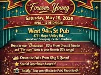 West 94th Street Pub, 4711 Hope Valley Road, #6C, Durham, North Carolina, hosts frequent events, which you can find on its Facebook page. Read on for a few! Upcoming Events Pub's 80s Prom "Forever Young"Saturday, May 16, 20268 p.m. to midnightFree Dress in your best 80s outfits and dance to your favorite 80s songs. Crown the prom king and queen and compete for special superlative awards. … [Read more...] about 80s Pub Prom at West 94th Street Pub in Durham May 16