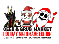 Geek and Grub Market is a celebration of all things geek! Play giant games, eat great food, and purchase geeky items from an array of local geek-themed artisans. This themed monthly market, which is presented by the folks at Triangle Game Night, is free to attend. Each market features 30+ geeky vendors, giant games, food trucks, and fun competitions. The events are free to attend. Geek … [Read more...] about Geek & Grub Market: Holiday Nightmare Edition Dec. 14