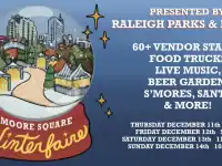 MAKRS and Raleigh Parks are presenting the first Moore Square Winterfaire from Thursday, December 11, to Sunday, December 14, 2025. Admission is free. This 4-day festival features 60+ vendors, a food truck rodeo, live bands, Santa, s’mores, a beer garden and more! … [Read more...] about Moore Square Winterfaire — new 4-day European style Christmas Market and Festival