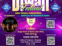 Diwali is India's most important festival of the year. It's celebrated in October or November. The "Festival of Lights" celebrates the triumph of light over darkness. Some components of Diwali celebrations are food, colored sand, special candles and lamps, music, dancing, and fireworks. There are several Diwali celebrations in the Triangle -- including in Cary, Wake Forest, Raleigh and … [Read more...] about 6 Diwali Celebrations in the Triangle in 2025
