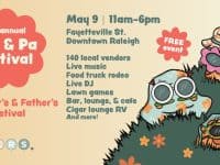 Celebrate both Mother's Day and Father's Day at the Ma & Pa Festival on May 9, 2026, from 11 a.m. to 6 p.m., at Fayetteville Street, between Hargett and Davie Streets, in Downtown Raleigh, North Carolina. It's free to attend. Shop local this year for your parents with some of the best local vendors! There will be a DJ and live music keeping the party alive and an interactive lounge section … [Read more...] about Ma & Pa Festival — a Mother’s and Father’s Day Festival May 9