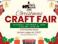 Pace Family Farms, 12701 Buffalo Road, Clayton, is holding its 7th Annual Christmas Craft Fair on Saturday, December 6, 2025, from 9 a.m. to 3 p.m. This is an outdoor event and features more than 70 vendors. Shop for hand crafted products for your gift list! It's free to attend. There will be food available for purchase. … [Read more...] about 7th Annual Christmas Craft Fair at Pace Family Farms Dec. 6 (and more holiday markets)