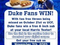 Duke Promo: Free sub at Harris Teeter because opponent missed 2 free throws