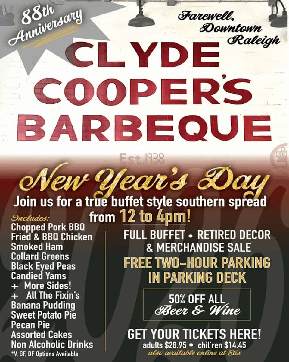 As a farewell celebration, Clyde Cooper’s Barbeque is is holding an New Year’s Day Buffet on January 1, 2026, from 12 to 4 p.m.