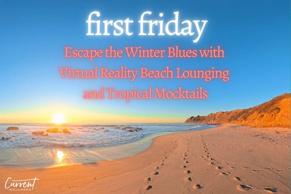 Current Wellness, at 219 S East Street, Raleigh, NC, is hosting First Friday: Escape the Winter Blues with Virtual Reality Beach Lounging and Tropical Mocktails on Friday, February 6, 2026, from 5:30 to 7 p.m.