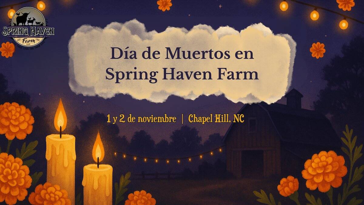 Spring Haven Farm, at 5306 Homer Ruffin Road, Chapel Hill, North Carolina, is opening their space for a Día de Muertos (Day of the Dead) gathering on November 1 and 2, 2025, from 10 a.m. to 6 p.m.