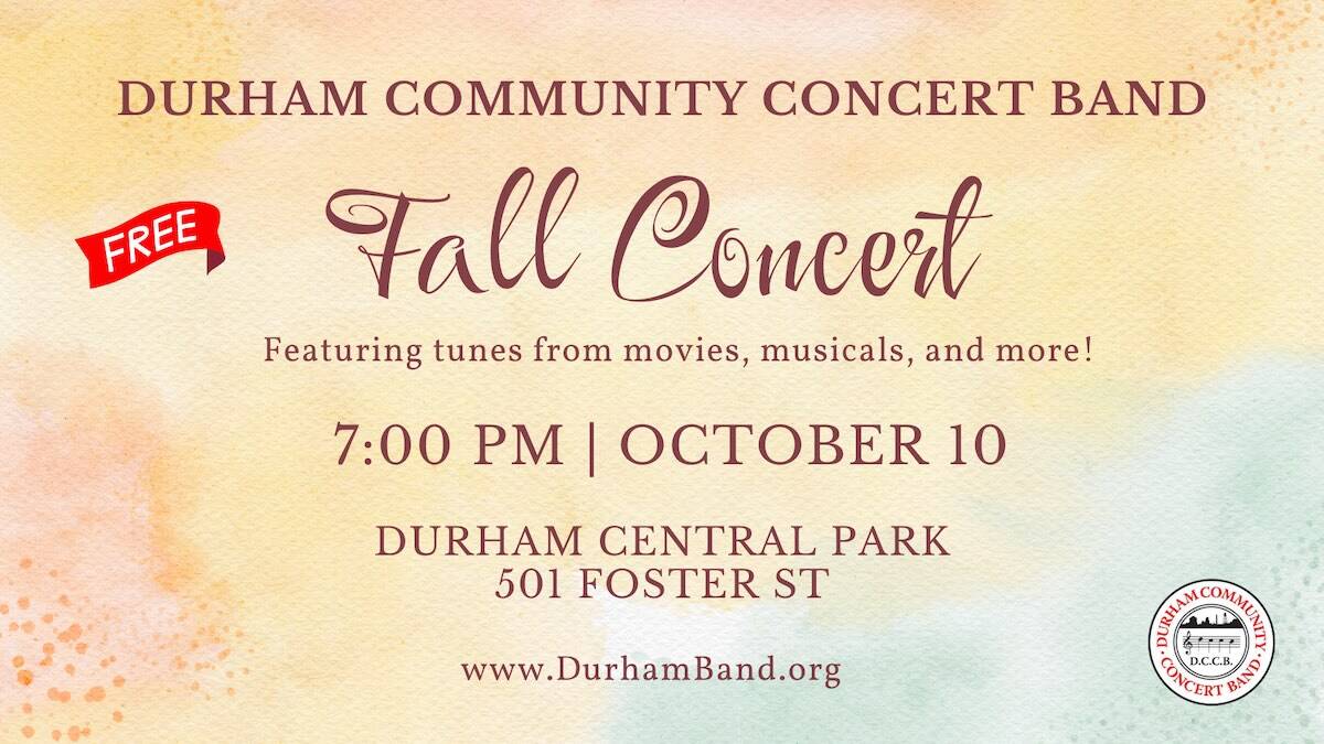 The band will be presenting their fall concert on October 10, 2025, at 7 p.m., at the Durham Central Park, 501 Foster Street, Durham, North Carolina.