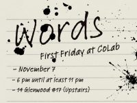 The CoLab, at 14 Glenwood Avenue, Suite #17, Raleigh, North Carolina, is a supportive community of artists. CoLab holds many events, which you can find at thecolabraleigh.com. Here's one that's coming up... First Friday at CoLab: WordsFriday, November 7, 20256 p.m. to 11 p.m.Free Visual art is ultimately about communication, so it's no surprise that text has been incorporated into it … [Read more...] about First Friday at CoLab: Words on Nov. 7