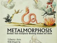 Liberty Arts, is a sculpture studio, foundry, gallery and art space. It serves as an incubator in which artists learn from each other. Liberty Arts offers classes in welding, casting, stone-carving, woodworking, plasma-cutting and ceramics. They are known for their work in iron. Each year they hold a public iron pour in Durham Central Park. In addition they host many community events. Read … [Read more...] about Metalmorphosis: Durham Tech Sculptural Welding Student Art Show at Liberty Arts May 1