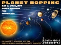 The Durham Medical Orchestra, which is associated with Duke University, was founded in 2010 by volunteer musicians with the mission to unite health-related professionals, Duke University, and the surrounding community through musical performance and collaboration to foster health, wellness, and the cultural enrichment of its audiences and members. The orchestra now has more than 100 members, … [Read more...] about Out of This World: Planet Hopping with Durham Medical Orchestra May 3