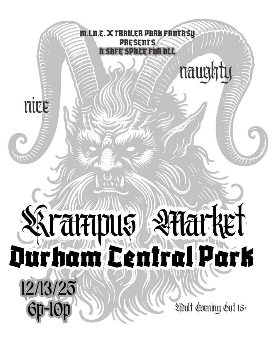 Krampus Night Market is a holiday event for adults only (18+) on Saturday, December 13, 2025, from 6 to 10 p.m., at Durham Central Park, 501 Foster Street, Durham, North Carolina.