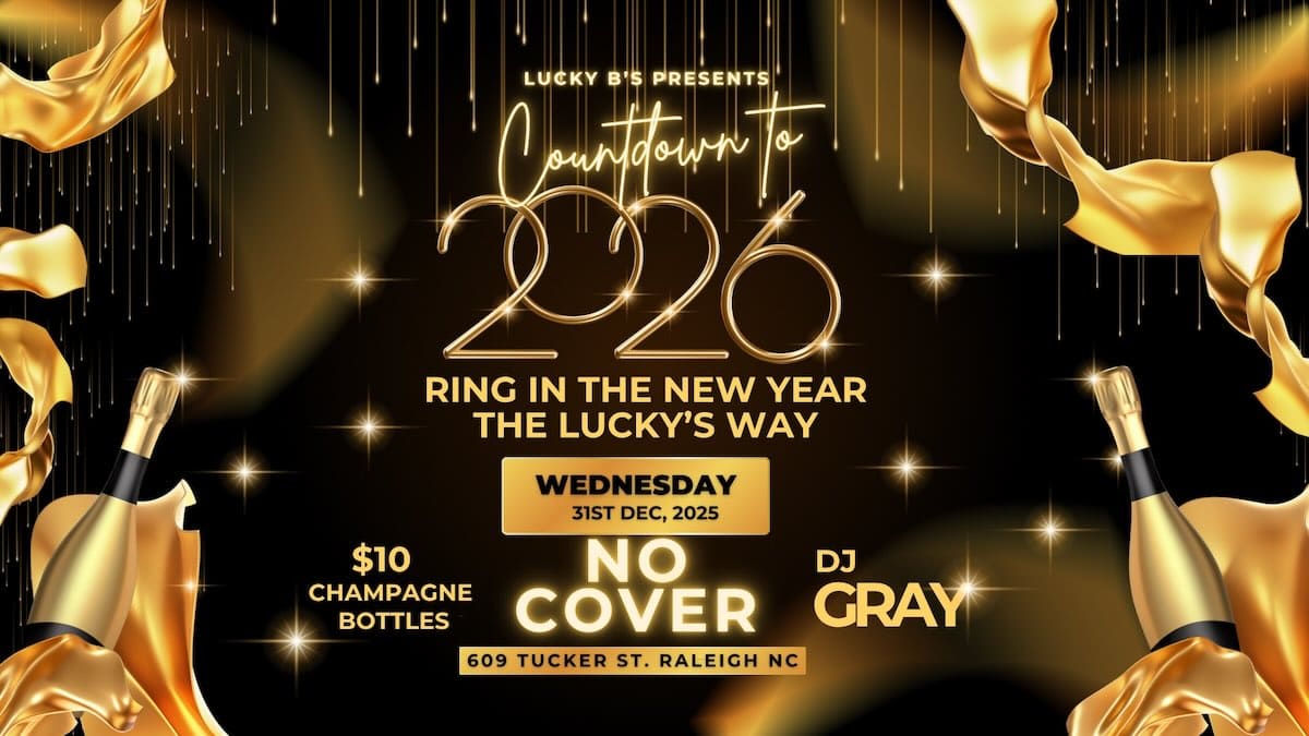 Lucky B’s, at 609 Tucker Street, Raleigh, North Carolina, is hosting Countdown to 2026 on Wednesday, December 31, 2025, from 10 p.m. to 2 a.m.