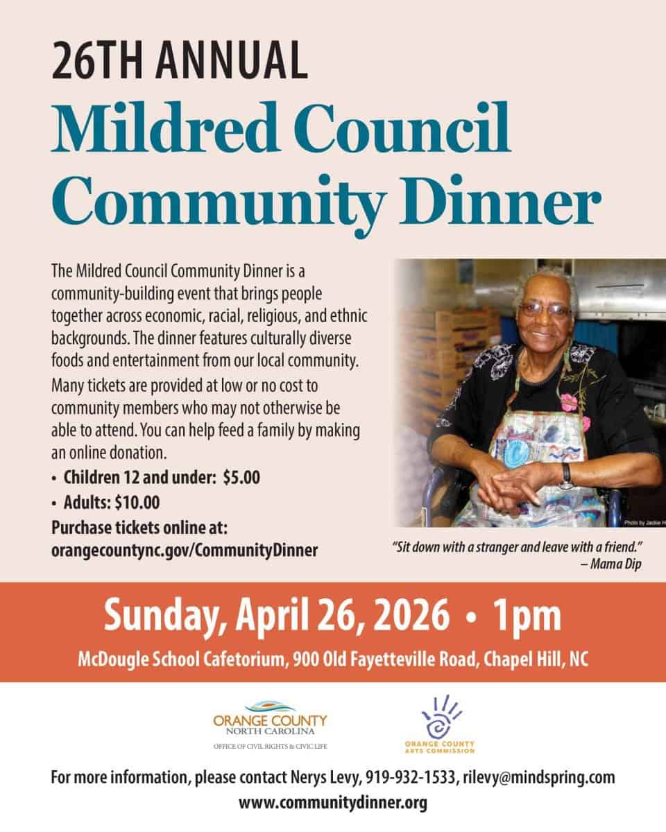 Each year, Orange County, NC, honors the legacy of Mildred Council—affectionately known as “Mama Dip”—by sharing a meal and strengthening our community. Sponsored by Orange County, this gathering brings together neighbors, friends, and families for an evening of fellowship, reflection, and service.