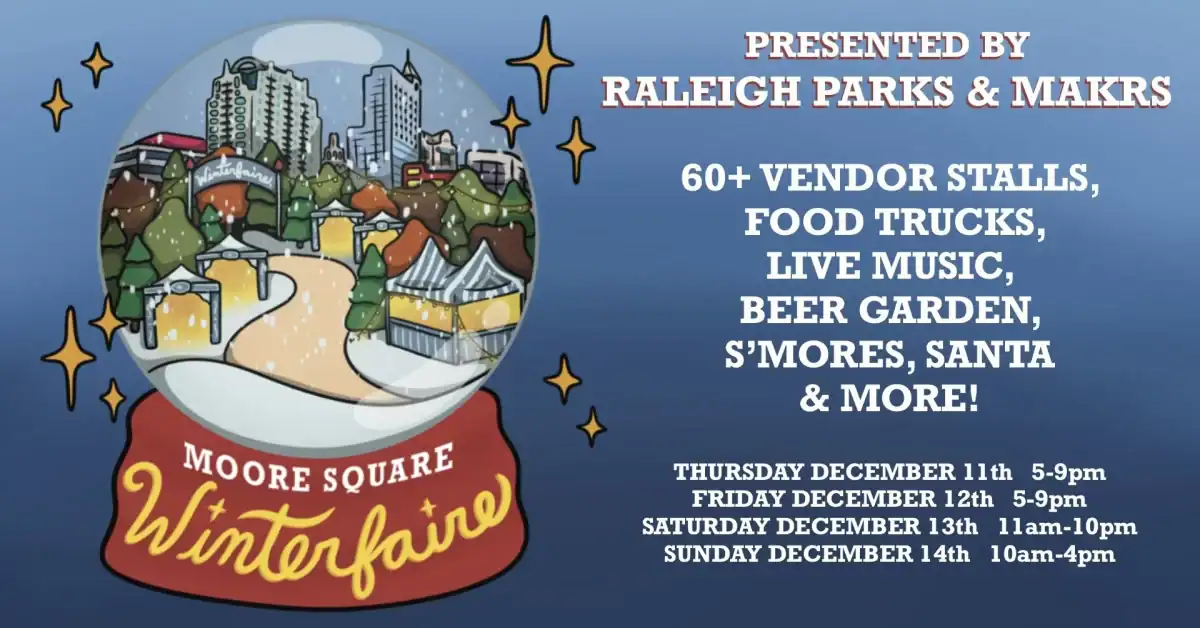 MAKRS and Raleigh Parks are presenting the first Moore Square Winterfaire from Thursday, December 11, to Sunday, December 14, 2025.