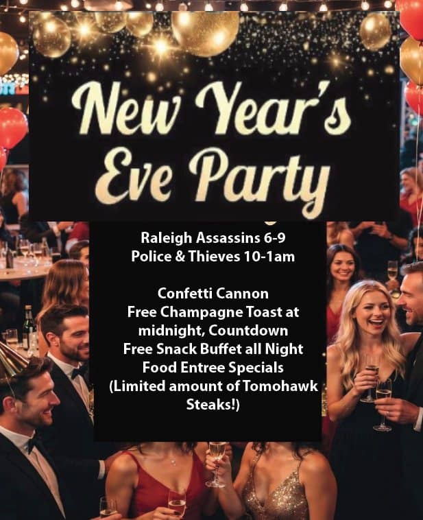 Aviator Hangar Bar, 688 Brewing Drive, Fuquay-Varina, North Carolina, is hosting a New Year’s Eve Bash on Wednesday, December 31, 2025, starting at 6 p.m.