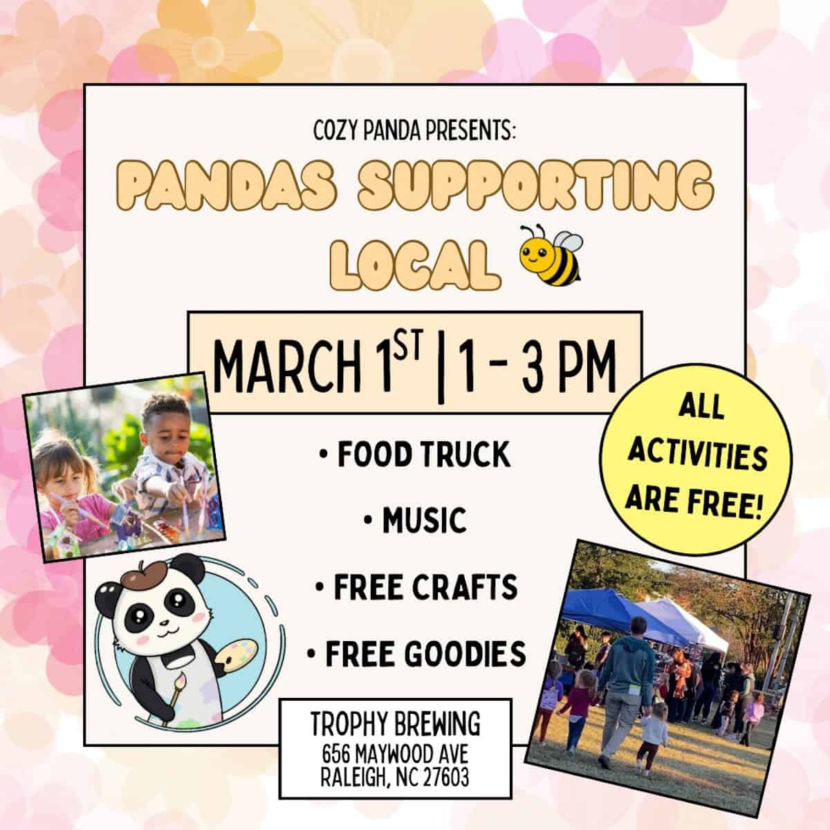 Cozy Panda presents Pandas Supporting Local on March 1, 2026, from 1 to 3 p.m., at Trophy Brewing, 656 Maywood Avenue, Raleigh, North Carolina.