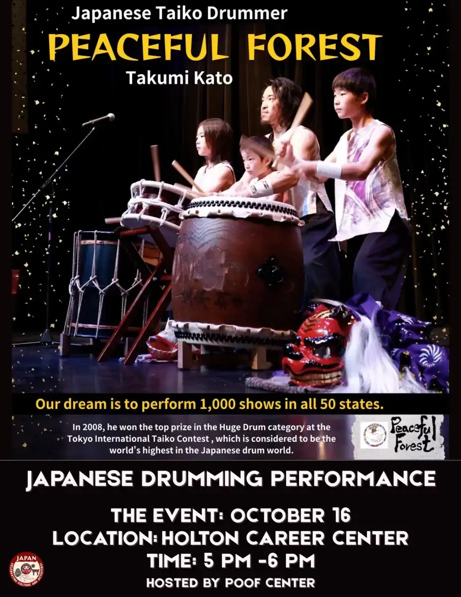 Enjoy a free Japanese drumming performance on Thursday, October 16, 2025, from 5 to 6 p.m., at Holton Career Center, 401 N Driver Street, Durham, North Carolina.