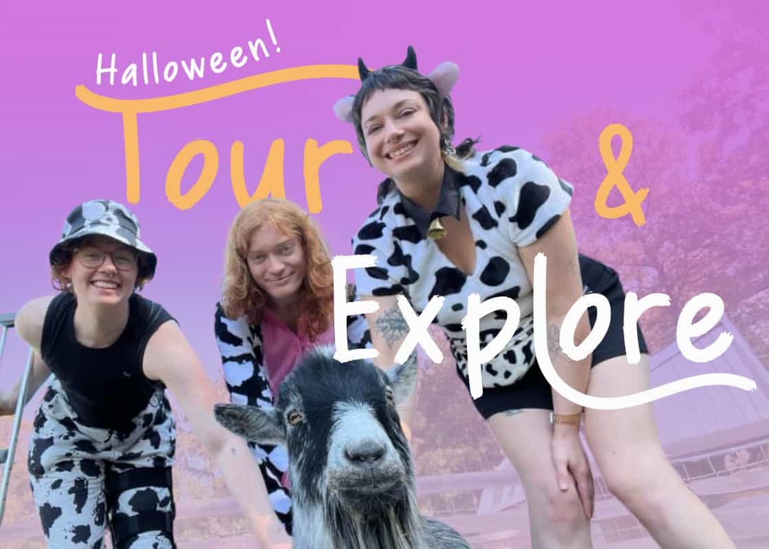 Come to the Refuge in your family-friendly costumes for our Halloween tour, where you can meet our 100+ farm animal residents and learn their rescue stories! There will also be free vegan trick-or-treating and pumpkin carving—they’ll supply the candy and the treat bags, and you can carve your free pumpkin on-site, or just enjoy it at home!