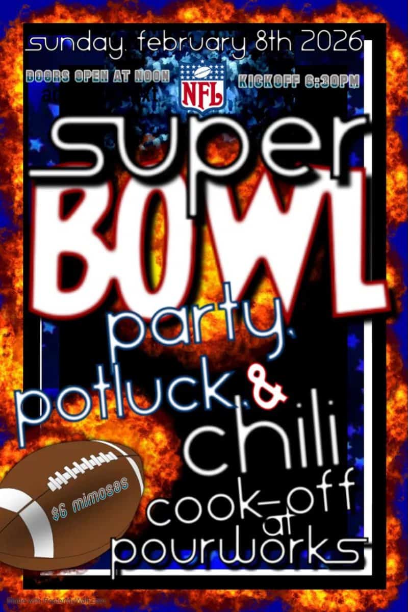 Bring your best chili and compete for prizes. Or just judge the chili and bring any dish to share. Doors open at noon. Free food with drink purchase.
