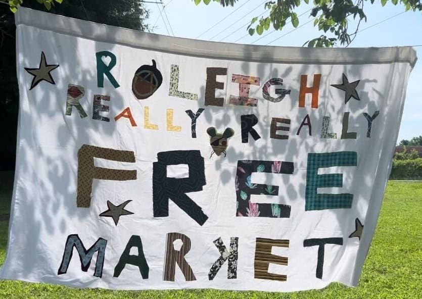 Raleigh Really Really Free Market is a monthly event where people can give away stuff for free and take stuff for free. No money is exchanged.