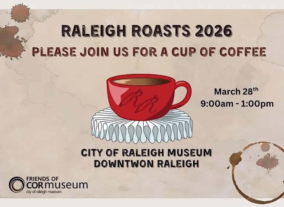 Raleigh Roasts is a popular annual event that brings many of Raleigh cafés together. It takes place Saturday, March 28, 2026, at City of Raleigh Museum, 220 Fayetteville Street, Raleigh, North Carolina, from 9 a.m. to 1 p.m.