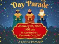 The Annual Desfile de Día de Reyes, or Three Kings Day Parade, will take place on North Academy Street in Downtown Cary, NC. It takes place on Saturday, January 10, 2026, at 1 p.m. Follow Diamante Arts & Culture Center on Facebook for announcements about the event. The parade is presented by Diamante Arts & Cultural Center, a community-grounded, arts and culture organization in … [Read more...] about Three Kings Day Parade in Cary Jan 10