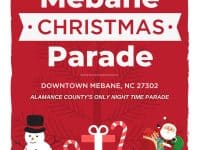 The Mebane Christmas Parade will take place Friday, December 5, 2025, from 7 to 9 p.m., in Downtown Mebane, North Carolina. This is Alamance County's only nighttime Christmas parade. The parade features over 100 entries, including businesses, churches, school groups and more. The parade starts at the intersection of Second Street and Clay Street. It goes down Clay Street, turns right at Fifth … [Read more...] about Mebane Christmas Parade Dec 5
