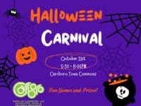 The Carrboro Recreation, Parks & Cultural Resources Department is hosting a Halloween Carnival at the Carrboro Town Commons, 301 W. Main Street, Carrboro, on Friday, October 31, 2025, from 5:30 p.m. to 8 p.m. This event was announced on Facebook. It's free to attend. The event will include a host of carnival games for children, who will receive a prize bag, while supplies … [Read more...] about Halloween Carnival at Carrboro Town Commons Oct 31