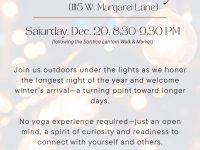 The Rookery, at 115 W Margaret Lane, Hillsborough, North Carolina, is hosting free Solstice Yoga on Saturday, December 20, 2025, from 8:30 to 9:30 p.m. It will take place after the Solstice Lantern Walk and Market. This event was announced on Facebook. Gather outdoor under the lights and honor the longest night of the year, and welcome winter's arrival -- a turning point toward longer … [Read more...] about Free Solstice Yoga at The Rookery in Hillsborough on Dec. 20
