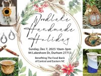 Shop local with your Durham neighbors at the Woodlake Handmade Holiday Craft Show. It takes place Sunday, December 7, 2025, from 10 a.m. to 3 p.m., at Woodlake Clubhouse, 94 Lakeshore Drive, Durham, NC. It's free to attend. 14 artists and bakers from Durham will be offering their crafts for some fun, local holiday shopping. There will also be a table for local kids to sell their … [Read more...] about Woodlake Handmade Holiday Dec. 7