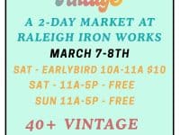 Shop for retro finds at Fall Back Vintage Market on Saturday, March 7, and Sunday, March 8, 2026, from 11 a.m. to 5 p.m. each day. It takes place at Raleigh Iron Works, 1101 East Whitaker Mill Rd, Raleigh, North Carolina. It's free to attend. On Saturday, early bird tickets are available for $10. Early bird tickets grant you admission from 10 a.m. to 11 a.m. There will be 40+ vendors, Bad … [Read more...] about Fall Back Vintage Market at Raleigh Iron Works March 7-8