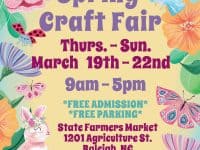 The Spring Craft Fair will be held on March 19 to 22, 2026, at State Farmers Market, 1201 Agriculture Street, Raleigh, North Carolina. It will take place from 9 a.m. to 5 p.m. each day. Admission and parking are both free. Shop for local, handmade crafts, specialty food items and more. For updates, check the Facebook event. … [Read more...] about Spring Craft Fair at State Farmers Market March 19-22