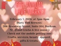 Handcrafted DURM Market takes place several times throughout the year at Durty Bull Brewing Company, 206 Broadway Street, Suite 104, Durham, North Carolina. Shop for fresh and funky crafts of all sorts, jewelry and accessories and more. These events are free to attend. Handcrafted DURM Market Handcrafted DURM Love MarketSaturday, February 7, 20262 to 6 p.m.Free This market features a … [Read more...] about Handcrafted DURM Love Market Feb. 7