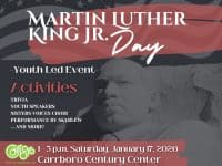 The Town of Carrboro is planning their MLK Day event on Saturday, January 17, 2026, from 1 to 3 p.m., at Carrboro Century Center, 100 N Greensboro Street, Carrboro, NC. Activities include: Celebrate the life and legacy of Dr. Martin Luther King Jr. by submitting a poem to be a part of our Dr. Martin Luther King Day Youth Poetry Exhibition. Elementary, Middle and High School students in Orange … [Read more...] about Dr. Martin Luther King Jr. Day Youth-Led Special Event in Carrboro Jan 17