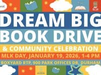 Book Harvest is presenting the Dream Big MLK Day Book Drive Celebration on Monday, January 16, 2026, from 1 p.m. to 4 p.m., at Boxyard RTP, 900 Park Offices, Durham, North Carolina. Book Harvest provides books to children who need them and engages families and communities to promote children’s lifelong literacy and academic success. Drop off your books and then join the celebration, which … [Read more...] about Book Harvest Dream Big MLK Day Book Drive and Community Celebration Jan 19